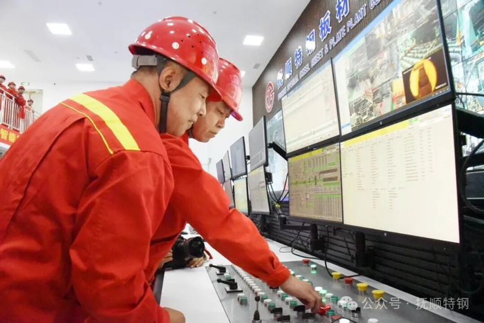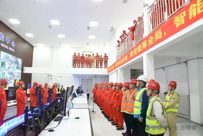 他说,就在刚才,我们共同见证了抚顺特钢发展史上一个里程碑式的时刻——国内首条智能化高合金板材生产线热负荷试车圆满成功!这不仅是一条生产线的成功,更是抚顺特钢积极响应“制造强国”战略,在中国特钢发展蓝图上挥就的浓重一笔!这条生产线的成功,标志着我们正式迈入了“智造”新时代。 它用“大数据”的智慧取代了传统的“人机对话”,用“集中控制”的精准重构了生产的全流程。从此,“无人化”制造从蓝图走进现实。这不仅仅是效率的跃升、品质的变革,更是我们面向未来竞争,构筑核心优势的坚实底座。我们攻克的不只是技术难关,更是传统生产模式的壁垒,为中国高合金板材的“高质量、高精度、高稳定性”树立了全新的行业标杆。