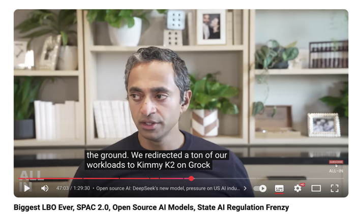 在近期一场关于AI大模型的讨论中,知名风险投资公司Social Capital创始人查马斯(Chamath)介绍,公司已经把大量工作需求转移到了来自中国的模型Kimi K2上,K2不仅性能强,而且比 OpenAI和Anthropic便宜太多。“Anthropic确实厉害,就是真的太烧钱。”, 查马斯表示,由中国模型引领的开源世界,以DeepSeek、Kimi和Qwen为代表,正在挑战美国闭源模型的领先地位。”